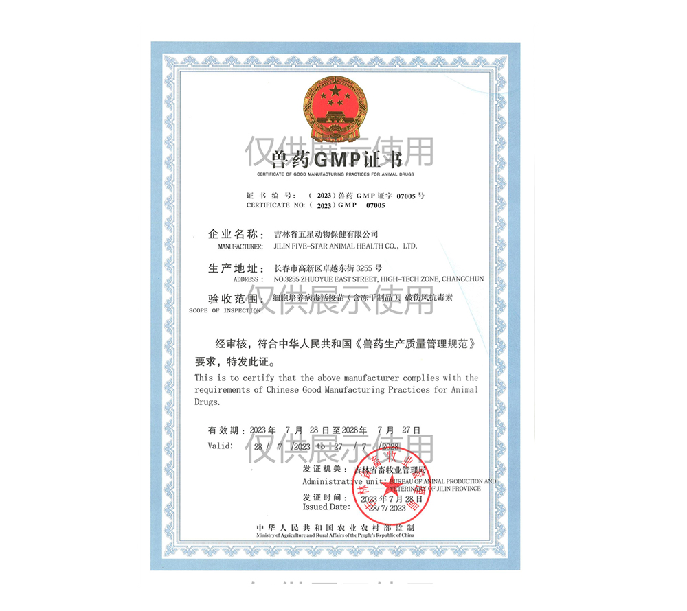 獸藥GMP證書(shū)地址:吉林省長(zhǎng)春市高新區(qū)卓越東街3255號(hào) 售后服務(wù)電話:400-788-8585